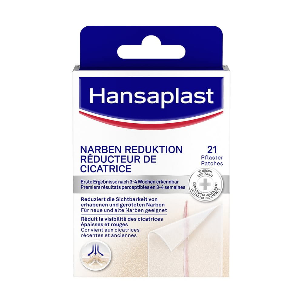 Hansaplast Narben Reduktion ist ein transparentes, selbstklebendes Pflaster aus Polyurethan. Produkte aus diesem Material werden seit Jahren in der professionellen Wundversorgung eingesetzt. Die Pflaster enthalten keine Wirkstoffe (Pharmazeutika), die Nebenwirkungen verursachen können. Sie sind ein sicherer und effizienter Weg, um erhabene und farbige hypertrophe Narben oder Keloid-Narben effektiv zu reduzieren.