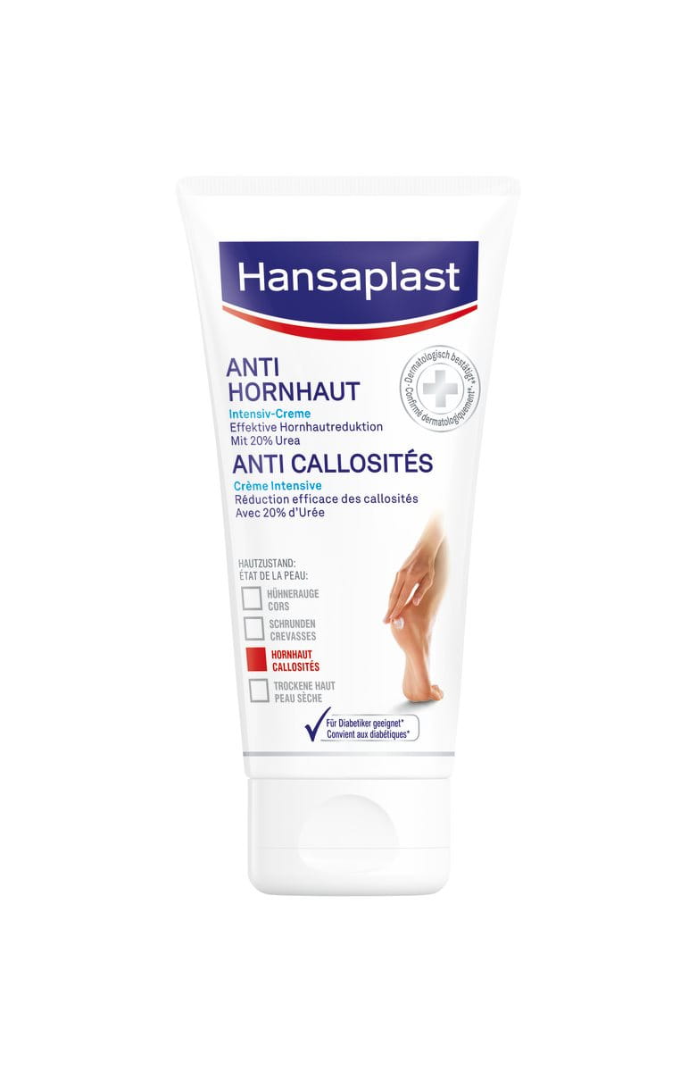 Die Hansaplast Intensiv-Creme besteht aus der innovativen Kombination einer hoch effektiven, Hornhaut reduzierenden Urea-Konzentration (20%) und der Aquaporin Technologie. Die Formel versorgt die Haut intensiv mit Feuchtigkeit und sorgt für ein lang anhaltendes Ergebnis. Die Auqaporin Technologie basiert auf Gluco-Glycerol, wodurch das hauteigene Feuchtigkeitsnetzwerk und die Bildung von Feuchtigkeitskanälen, den Aquaporinen, angeregt wird – für eine optimale Feuchtigkeitsverteilung in der Epidermis.