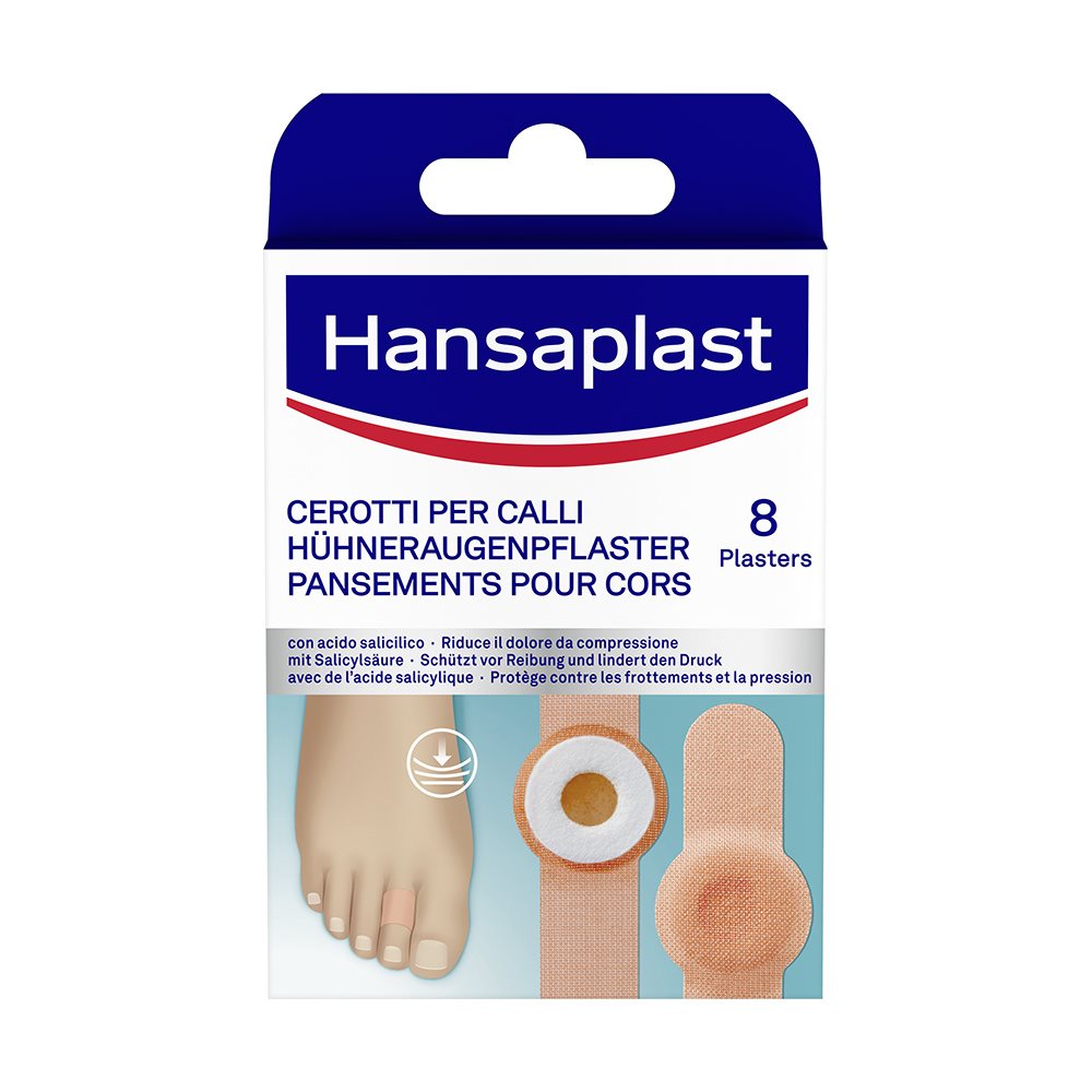 Das Hansaplast Hühneraugen-Pflaster lindert sofort den Schmerz durch Druck und Reibung und hilft Hühneraugen zu entfernen. Die Pflaster sind schnell und einfach in der Anwendung und bieten sicheren Halt dank des extra langen Fixierstreifens.