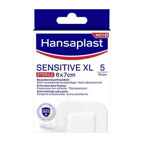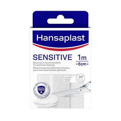 Für sensible Haut empfehlen wir die Hansaplast Sensitive Pflaster (erhältlich als Strips und Meterware), unsere hypoallergenen sterile Wundverbände Sensitive XL, XXL, 3XL und 4XL, sowie unsere hautfreundlichen Hansaplast Sensitive Kids Pflaster.
